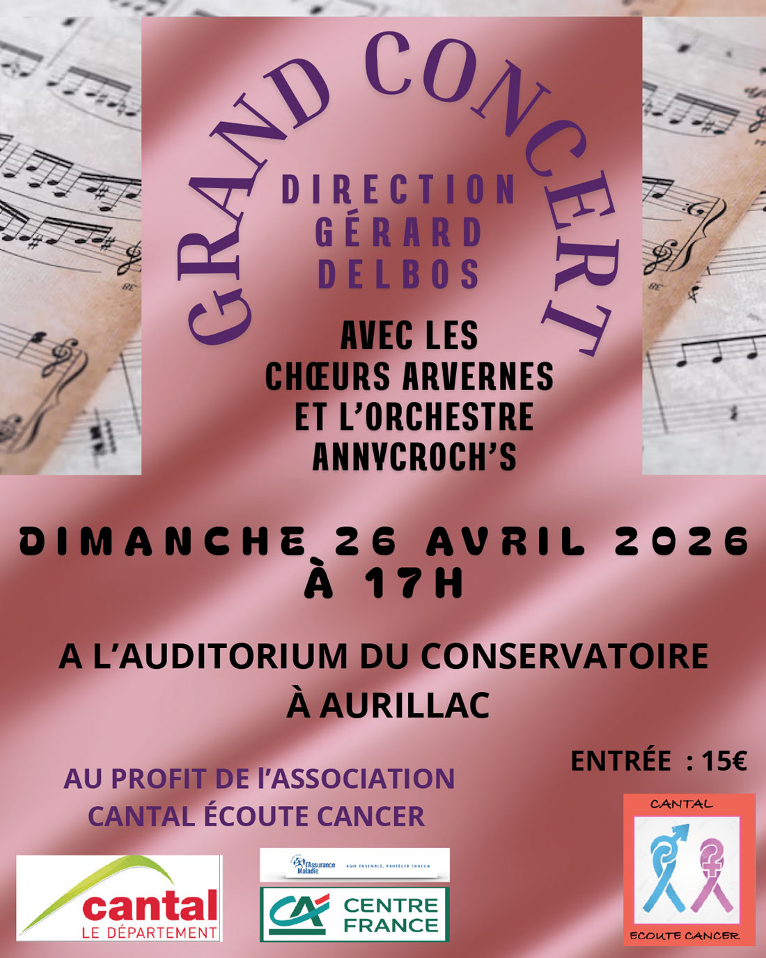 🎶 Grand concert chœurs et orchestre au profit de l’association CANTAL ECOUTE CANCER