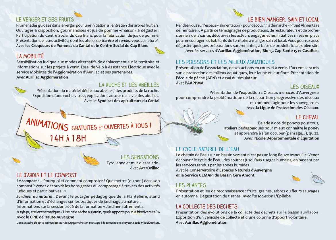 Au potager, rencontrez des jardiniers passionnés qui partageront leurs conseils sur la culture naturelle, le compostage ou encore la vie du sol. Du côté du verger, apprenez à entretenir vos arbres fruitiers, à transformer vos récoltes et dégustez le savoureux jus de pomme des Croqueurs de Pommes du Cantal. Les amateurs de tisanes pourront découvrir des plantes locales à infuser, présentées par l’association Épilobe.