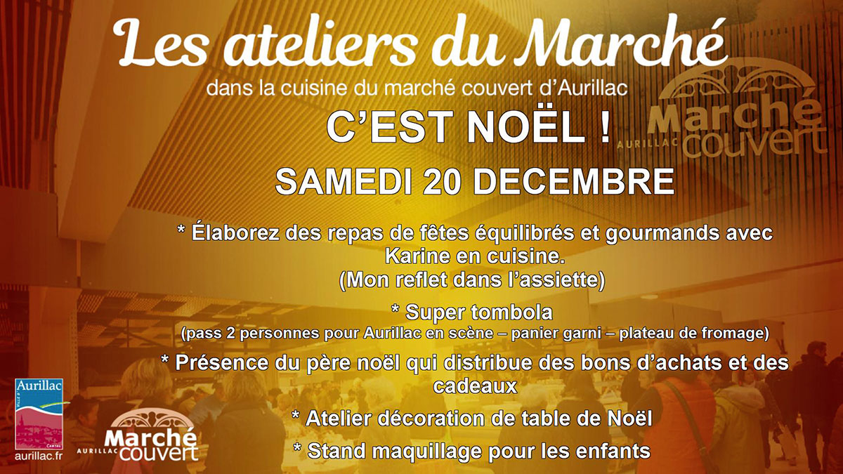 Samedi 20 décembre Noël du marché couvert. * Élaborez des repas de fêtes équilibrés et gourmands avec Karine en cuisine. (Mon reflet dans l’assiette) * Super tombola (pass 2 personnes […]