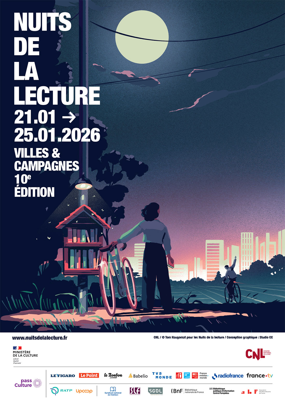 Pour leur 10ᵉ édition, organisée par le Centre national du livre, les Nuits de la lecture se déroulent du 21 au 25 janvier 2026 à travers des milliers d’événements organisés partout en France, dans les bibliothèques, médiathèques et autres lieux culturels. Cette édition est placée sous le thème « Villes et campagnes », une thématique largement explorée par la littérature. Elle interroge les relations entre les espaces urbains et ruraux, leurs représentations, leurs oppositions historiques, mais aussi les complémentarités qui les lient aujourd’hui, ainsi que les enjeux écologiques contemporains. À travers les récits, les poèmes et les lectures, les Nuits de la lecture proposent ainsi de porter un regard sensible et actuel sur ces territoires et sur les questions qui les relient.