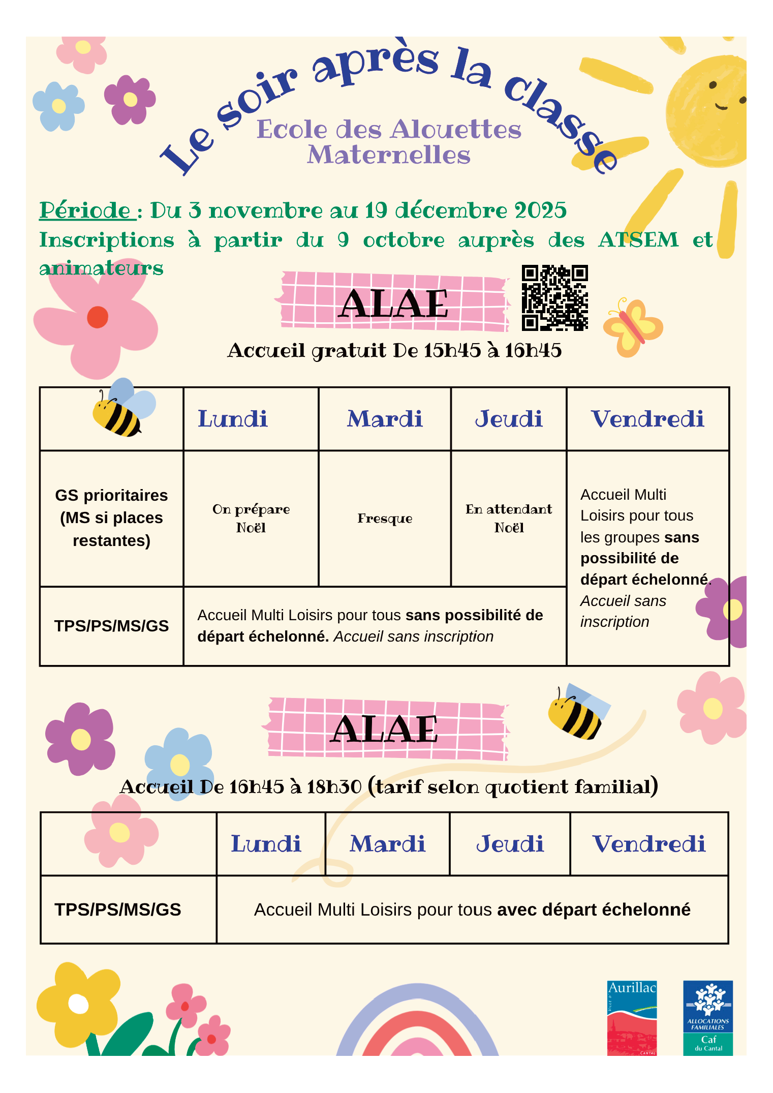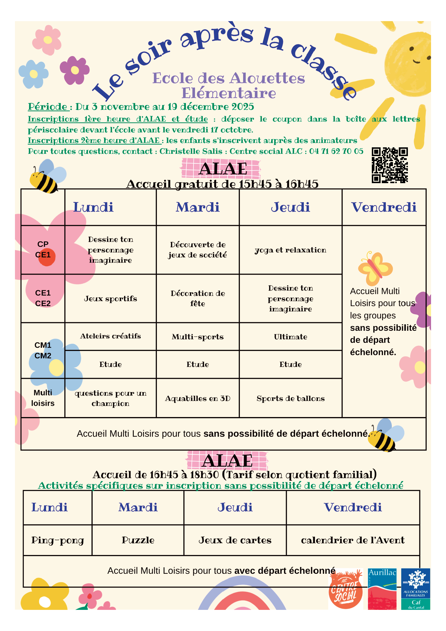 ALOUETTES / Après la classe & mercredis loisirs – ALAE