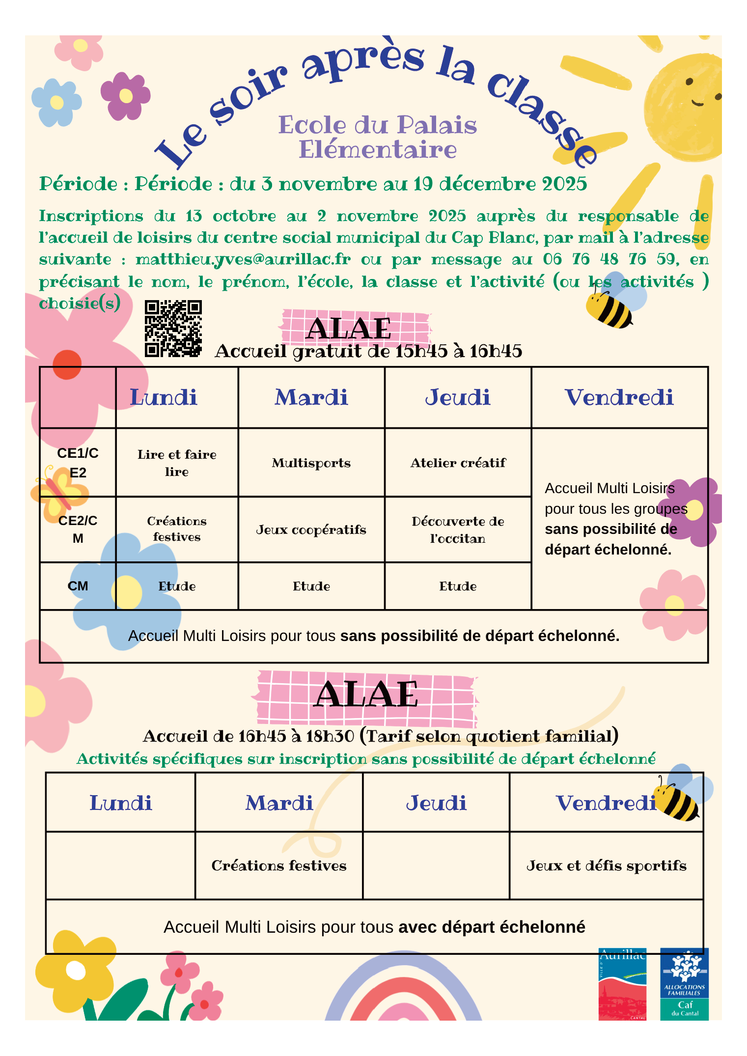 École du PALAIS / Après la classe & mercredis loisirs – ALAE