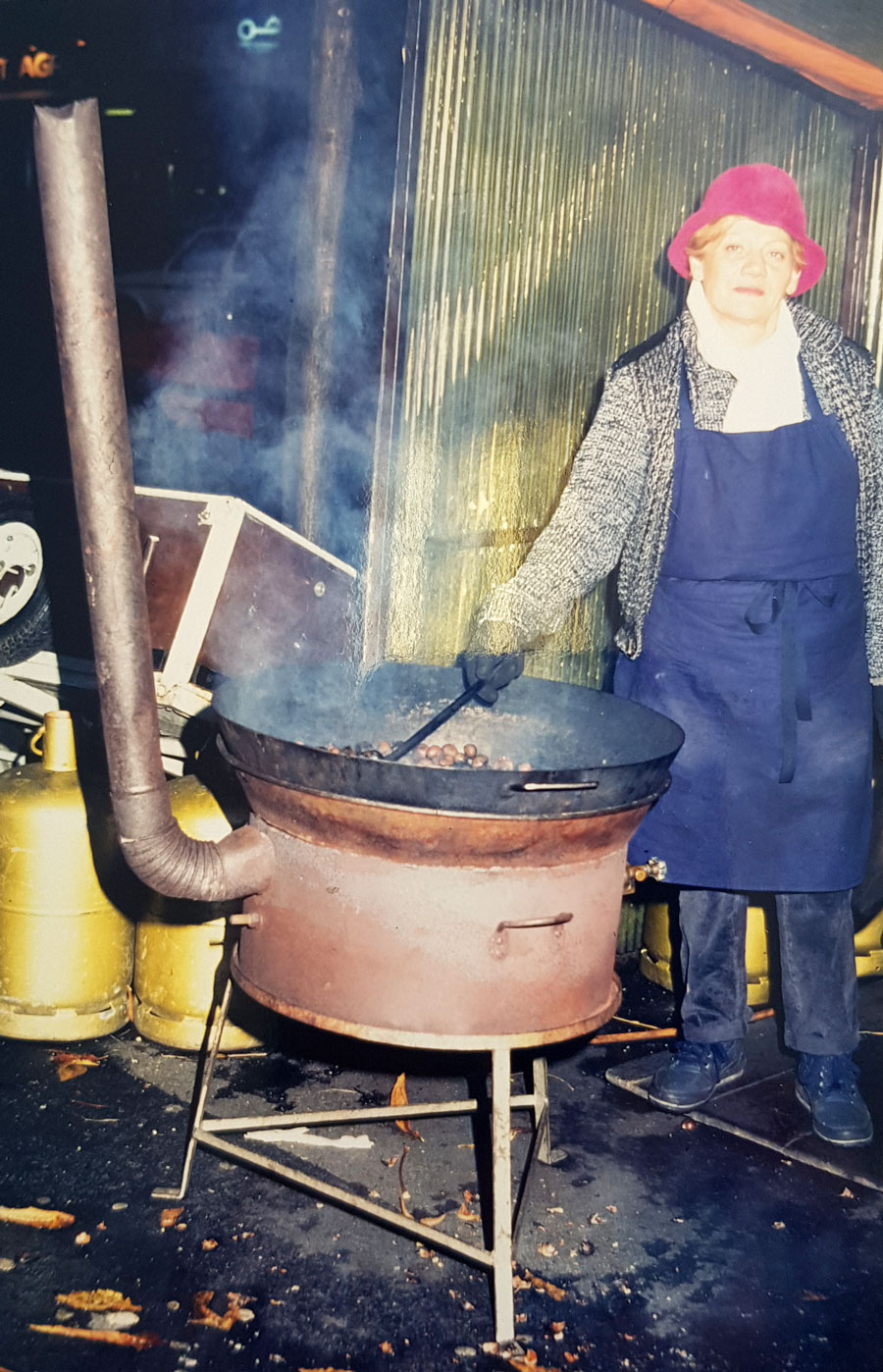 Durant l’été, Yvonne prépare et sert de magnifiques cornets de glaces , n’hésitant jamais à ajouter une boule supplémentaire aux enfants gourmands.En ce même lieu, l’hiver le chariot de glace cède sa place au brasero où les châtaignes grillent et réchauffent le cœur des promeneurs. Avec son sourire légendaire, Yvonne dépose ses « castagnes »dans un cornet de papier journal. Aussitôt le chaland s’empare de ce papier chaud, laissant quelquefois des traces d’encre noire sur les doigts et s’en va déguster ce trésor du pays sur un des bancs du square Vermenouze.