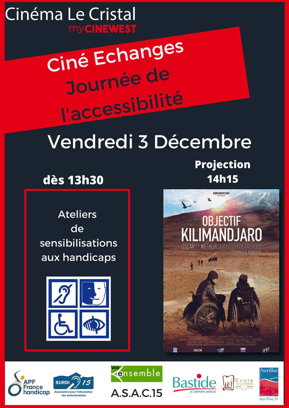 Vendredi 3 décembre, le cinéma Le Cristal organise un ciné Echanges dans le cadre de la Journée de l’Accessibilité.