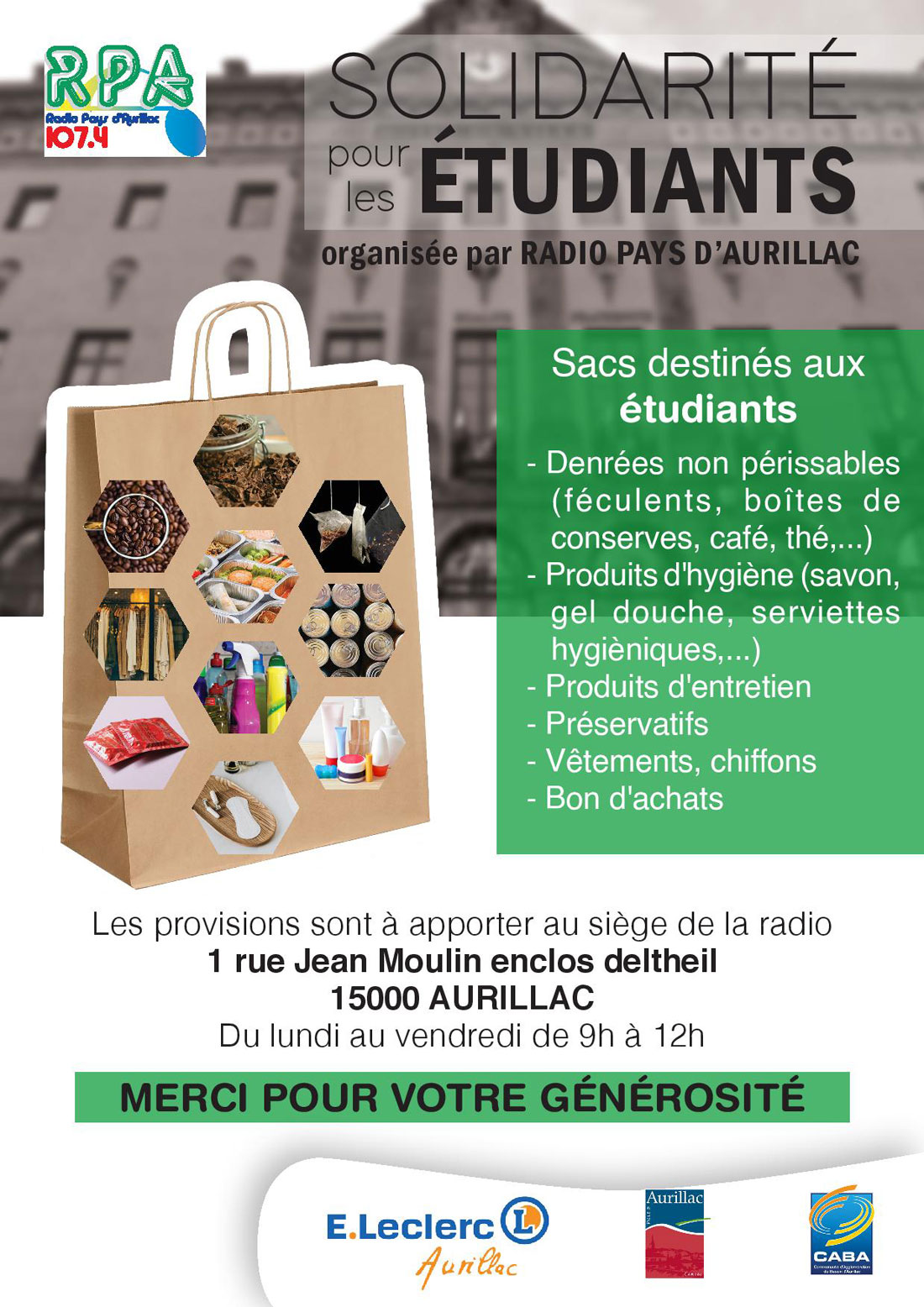 Pour les aider à améliorer leur quotidien pendant cette période difficile RADIO PAYS D’AURILLAC lance une opération SOLIDARITÉ ÉTUDIANT.