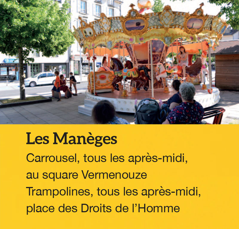 A partir du samedi 10 juin, retrouvez le carrousel au square Vermenouze et les trampolines place des Droits de l’Homme