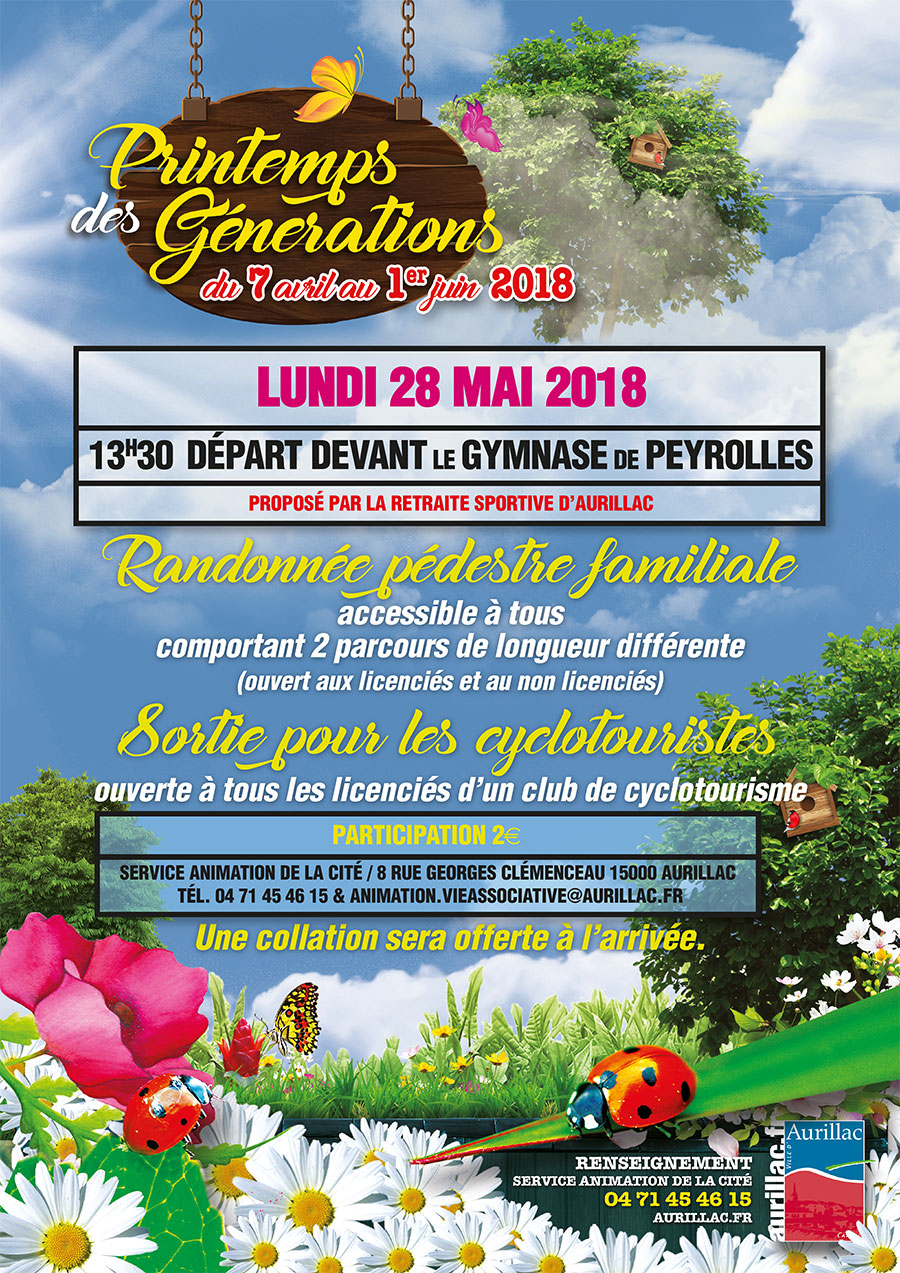 Le Printemps des Générations est une manifestation intergénérationnelle où les aînés, mais également les enfants, se retrouvent autour de nombreuses animations pour collecter des fonds et ainsi aider des jeunes à mener à bien leur projet professionnel et leur intégration sur le marché du travail.