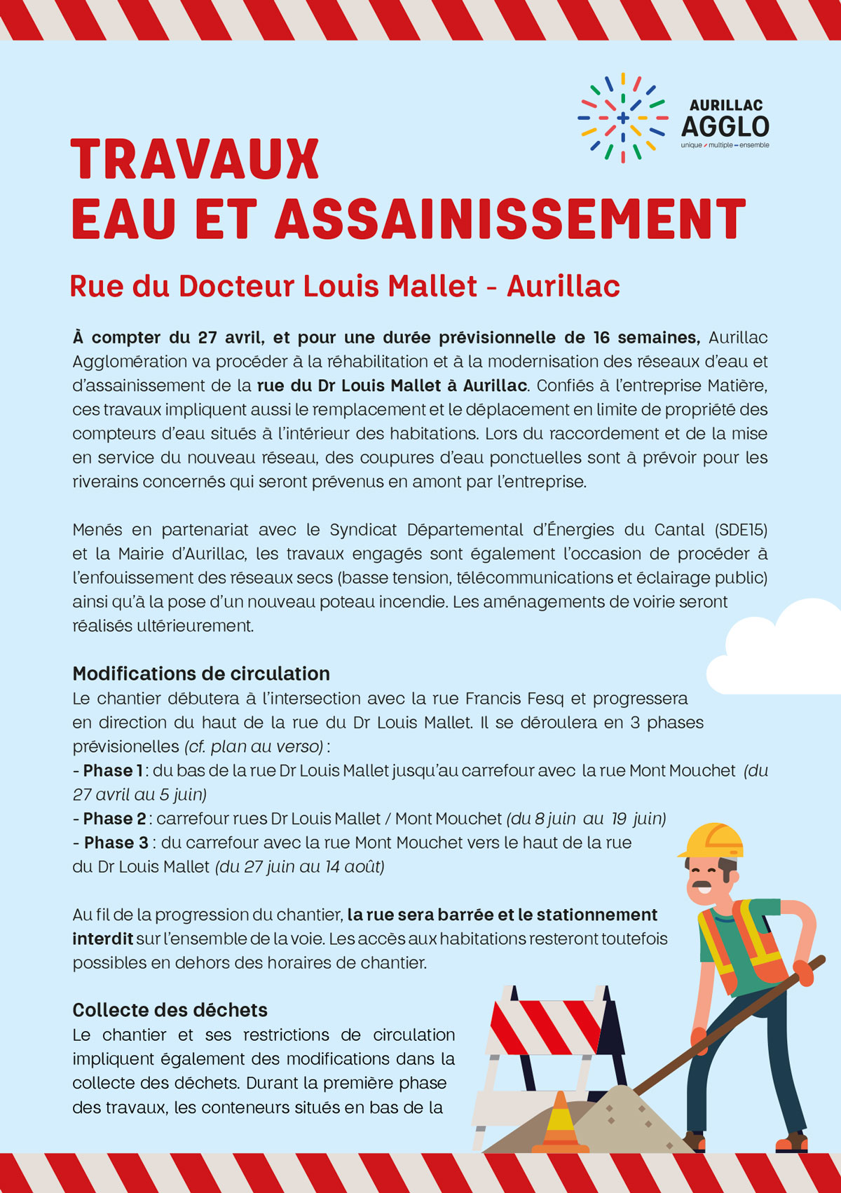 Tract TRAVAUX EAU ET ASSAINISSEMENT - Rue du Docteur Louis Mallet / Circulation modifiée