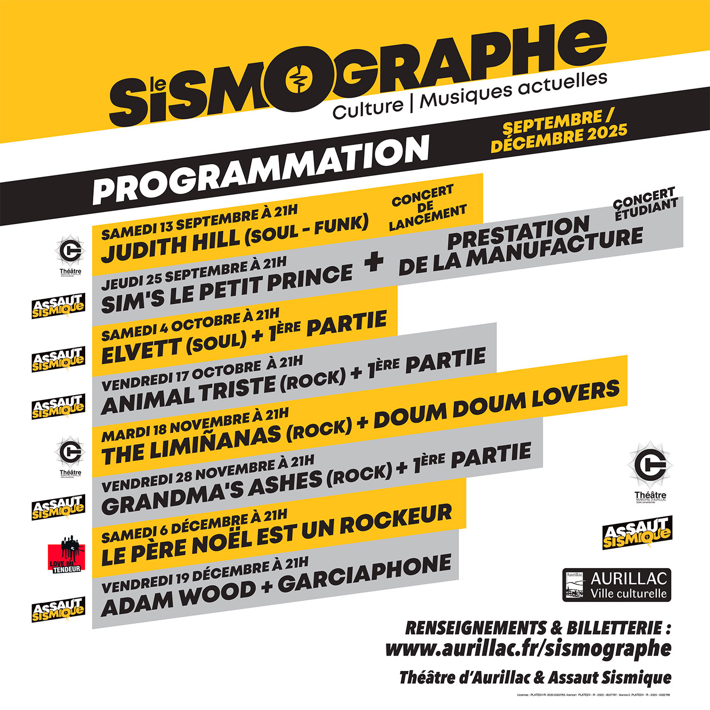 Le Sismographe est la première salle spécifiquement aménagée pour l’accueil de concerts des musiques actuelles dans le Cantal. Attendue depuis des années par la jeunesse, les mélomanes et les musiciens du territoire, elle a été érigée au cœur des quartiers sud d’Aurillac.