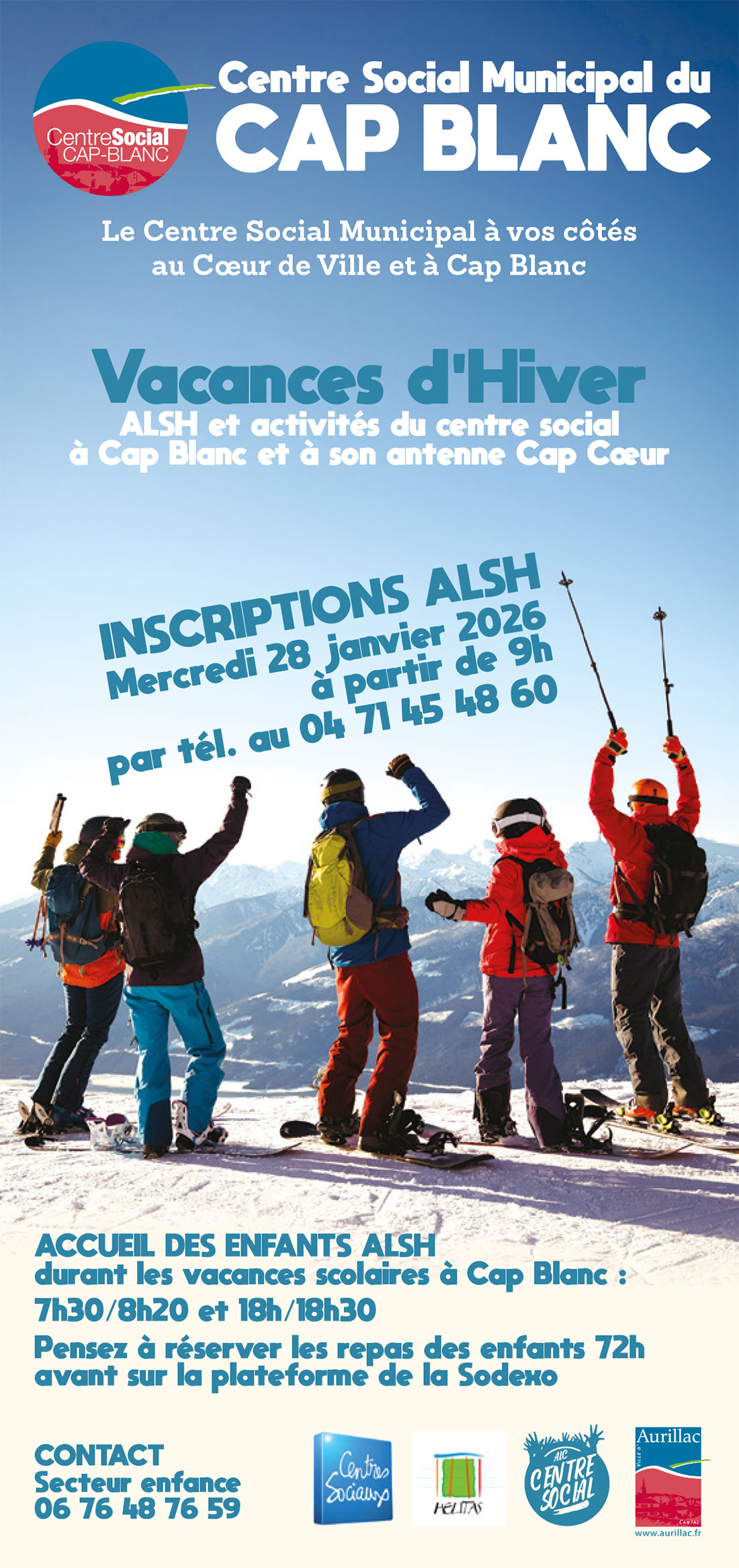 Vous pouvez vous inscrire dès aujourd’hui au 04 71 45 48 60 ou par mail : accueil.capblanc@aurillac.fr